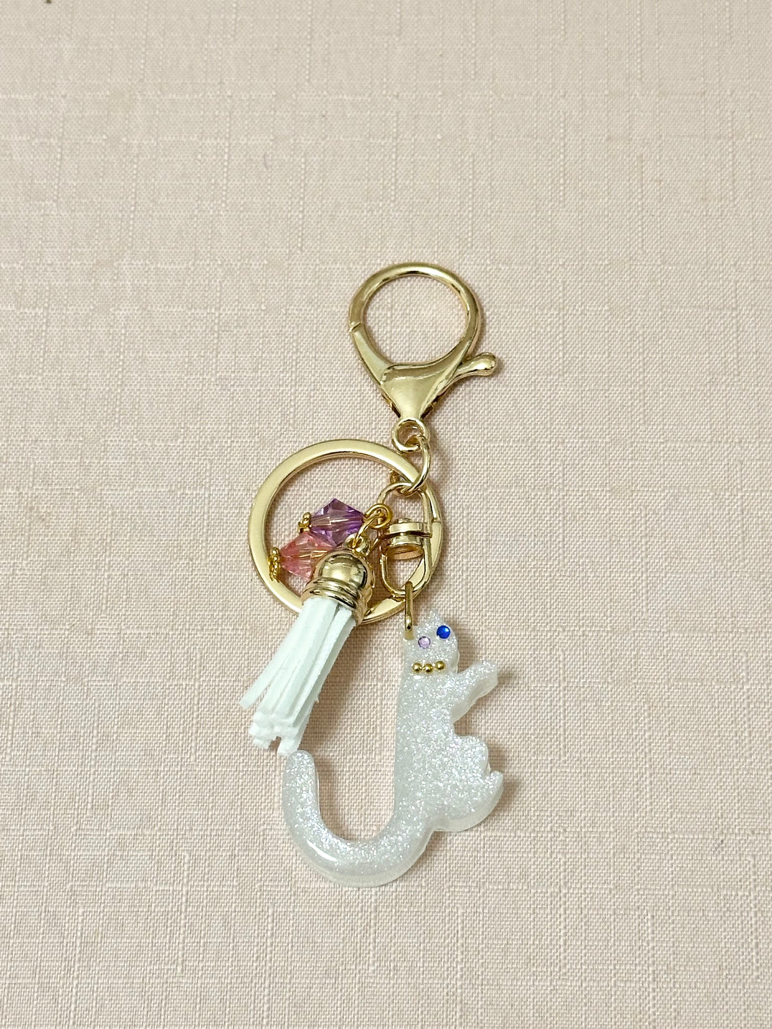 猫型のイニシャルキーホルダーです。