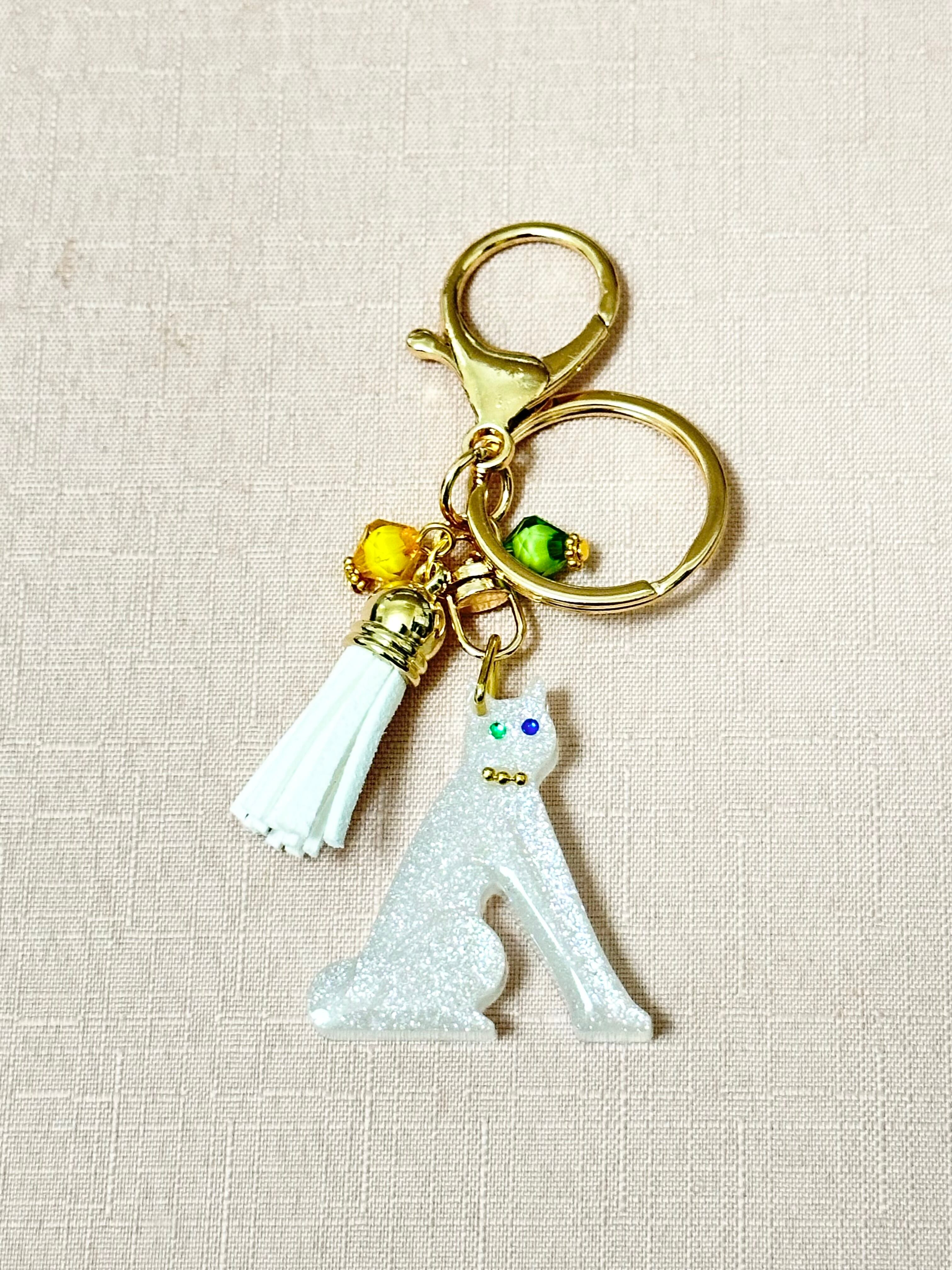 白ラメなにゃんことクリアなビーズで